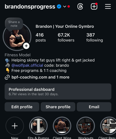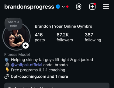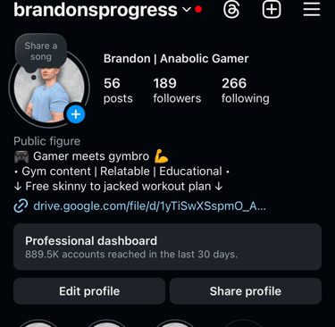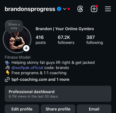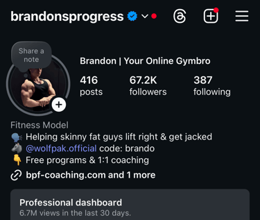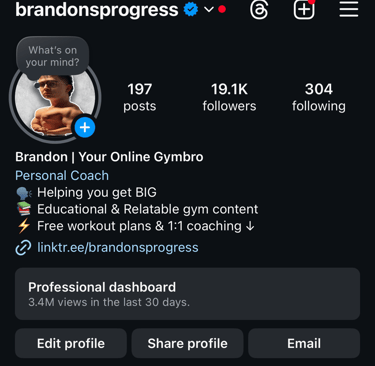 My client Brandon came to me with the goal of growing his social media brand and finding ways to target his audience to turn them into leads. After 8 months working with me, Brandon now runs a successful fitness coaching business with 10+ clients and is growing at a 250 follower a day rate on his social media.