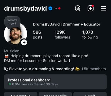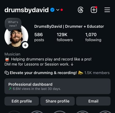 Alongside my personal brand DrumsByDavid, I also coach creators and musicians on content strategy, brand positioning, and audience development to help them grow online with authenticity and consistency.