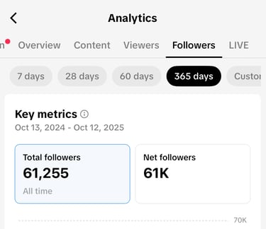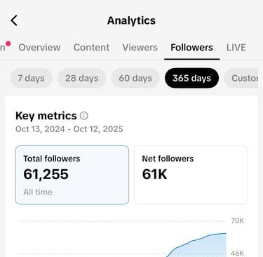 Below is a gallery of my follower analytics and growth insights over the past year, showcasing the steady and organic expansion of my brand across all major platforms. These metrics highlight the results of consistent posting, strategic content planning, and community-driven engagement that have helped me and clients grow from zero to over 350,000 followers.